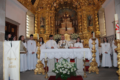 A capela tinha estado em obras e tínhamos decidido recompor algumas das coisas, nomeadamente a posição e localização das imagens. As obras são sempre ocasião para recompor coisas.