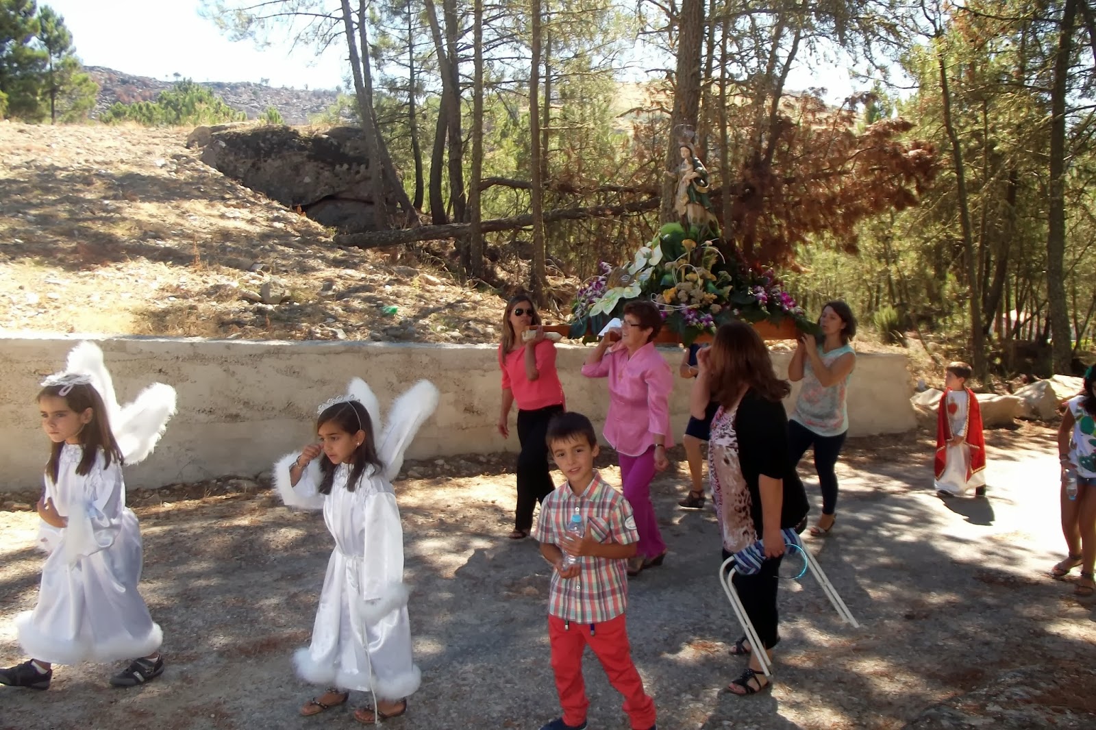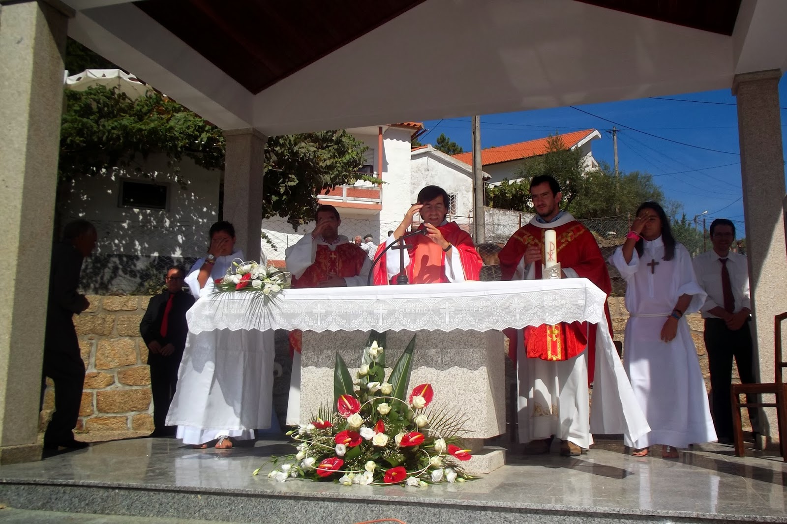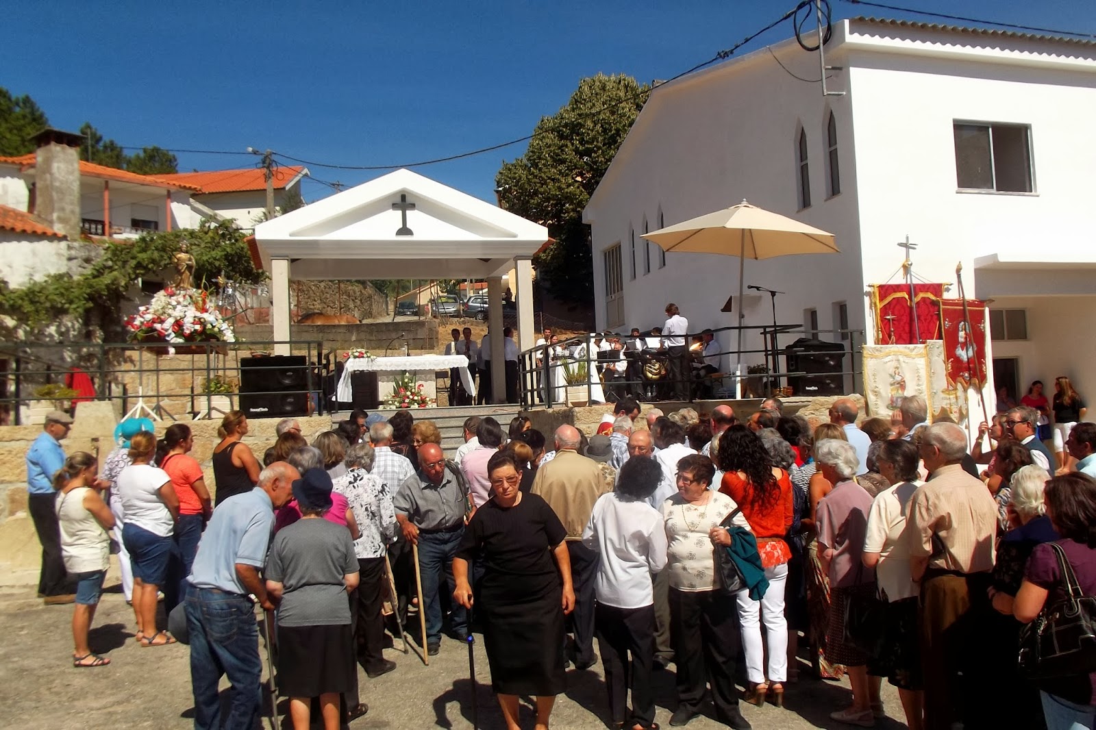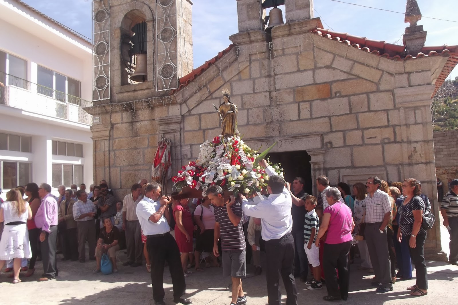 Depois da Missa, da Pregação, evocando a firmeza e fidelidade de Santa Eufémia e o desafio a vivermos testemunhando Jesus Cristo, a magestosa procissão com as 9 imagens dos Santos à veneração em Pinheiros: São Sebastião, Padroeiro da Diocese de Lamego, Santo António, Menino Jesus, Nossa Senhora de Fátima, Nossa Senhora do Rosário, Sagrado Coração de Jesus, São José, Santa Bárbara e Santa Eufémia. Este ano, outra novidade, os andores foram enfeitados com flores e já não com os tradicionais panos coloridos. A beleza honra-nos e sobretudo como homenagem aos santos evocados através das Imagens.