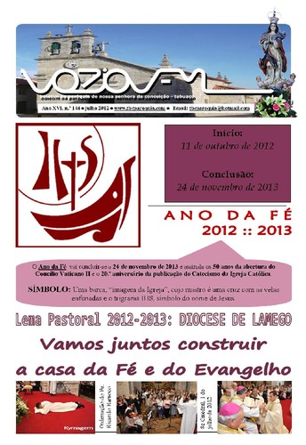 No fim de semana de 13 e 14 de outubro iniciámos o ANO DA FÉ na nossa comunidade paroquial, tendo sido inaugurado no Vaticano, pelo Papa Bento XVI, no dia 11 de outubro, 50.º aniversário da abertura do Concílio Ecuménico Vaticano II e 20.º aniversário da publicação do Catecismo da Igreja Católica, durante a XIII assembleia ordinária do Sínodo dos Bispos, entre 7 e 28 de outubro, sobre a “Nova evangelização para o transmissão da fé cristã”, no qual participa D. António Couto.
